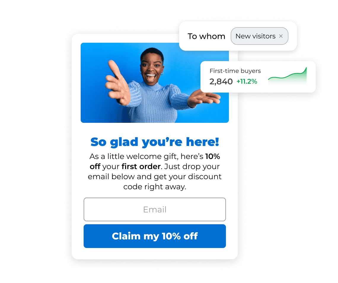Turn first visits into signups or first purchases by offering an engaging reward upfront. This helps you capture attention early and build your list before users leave without taking action.